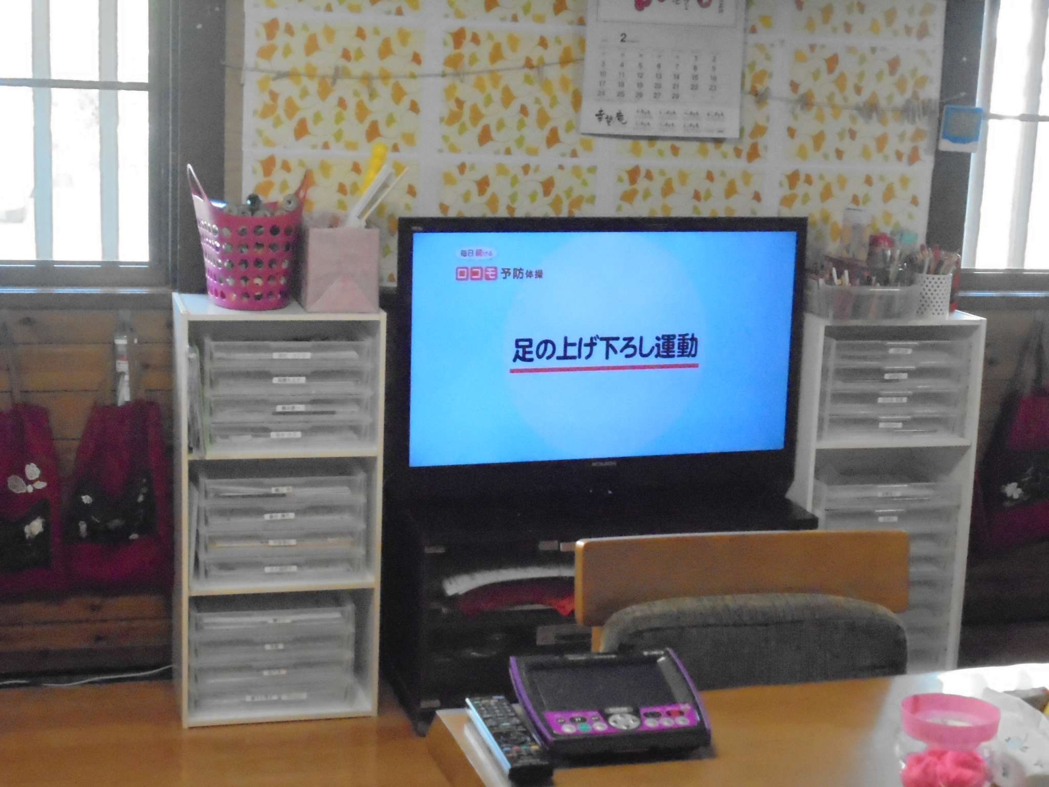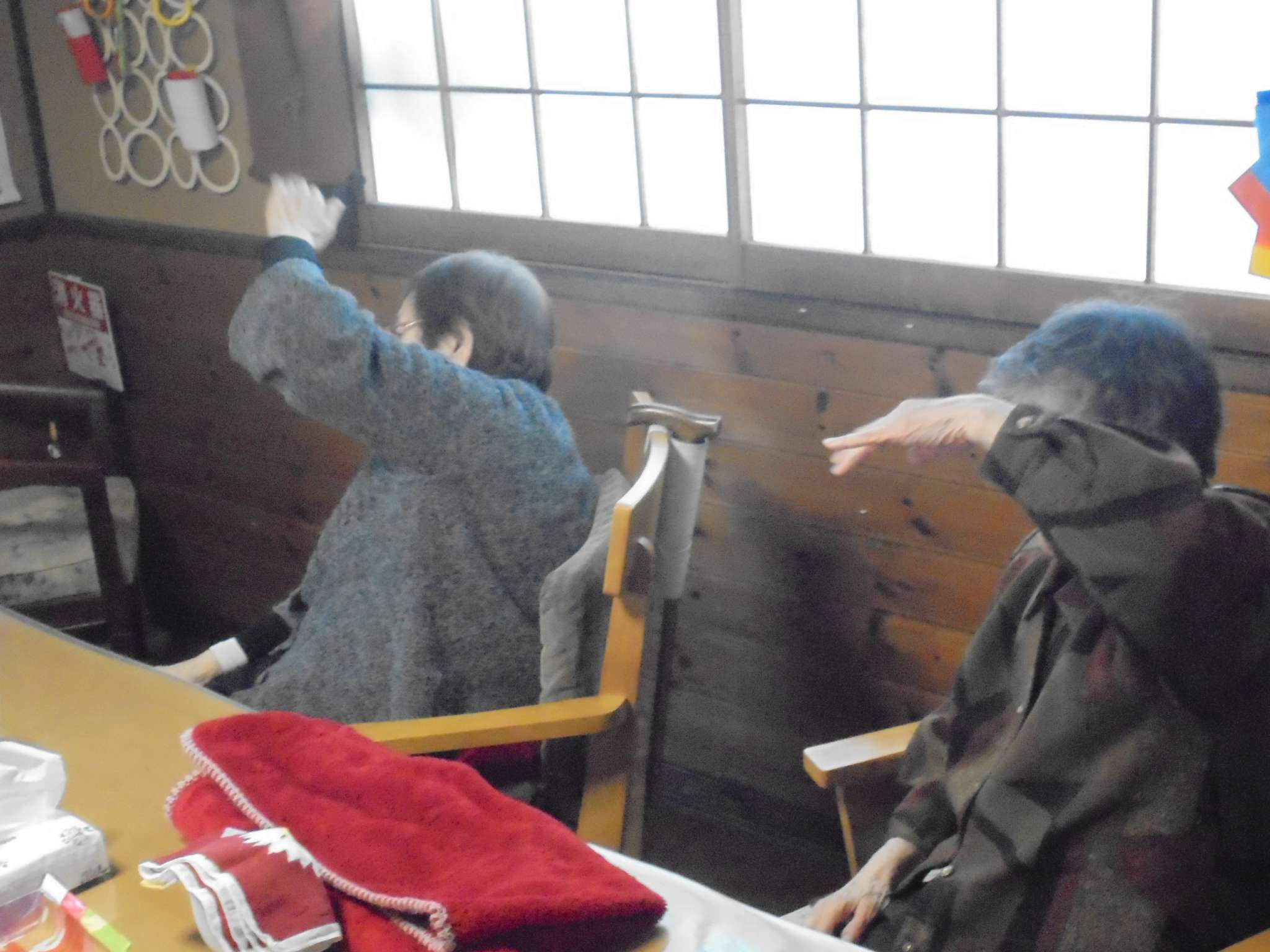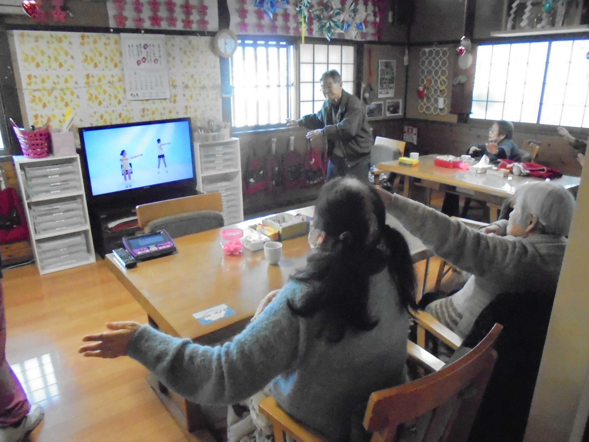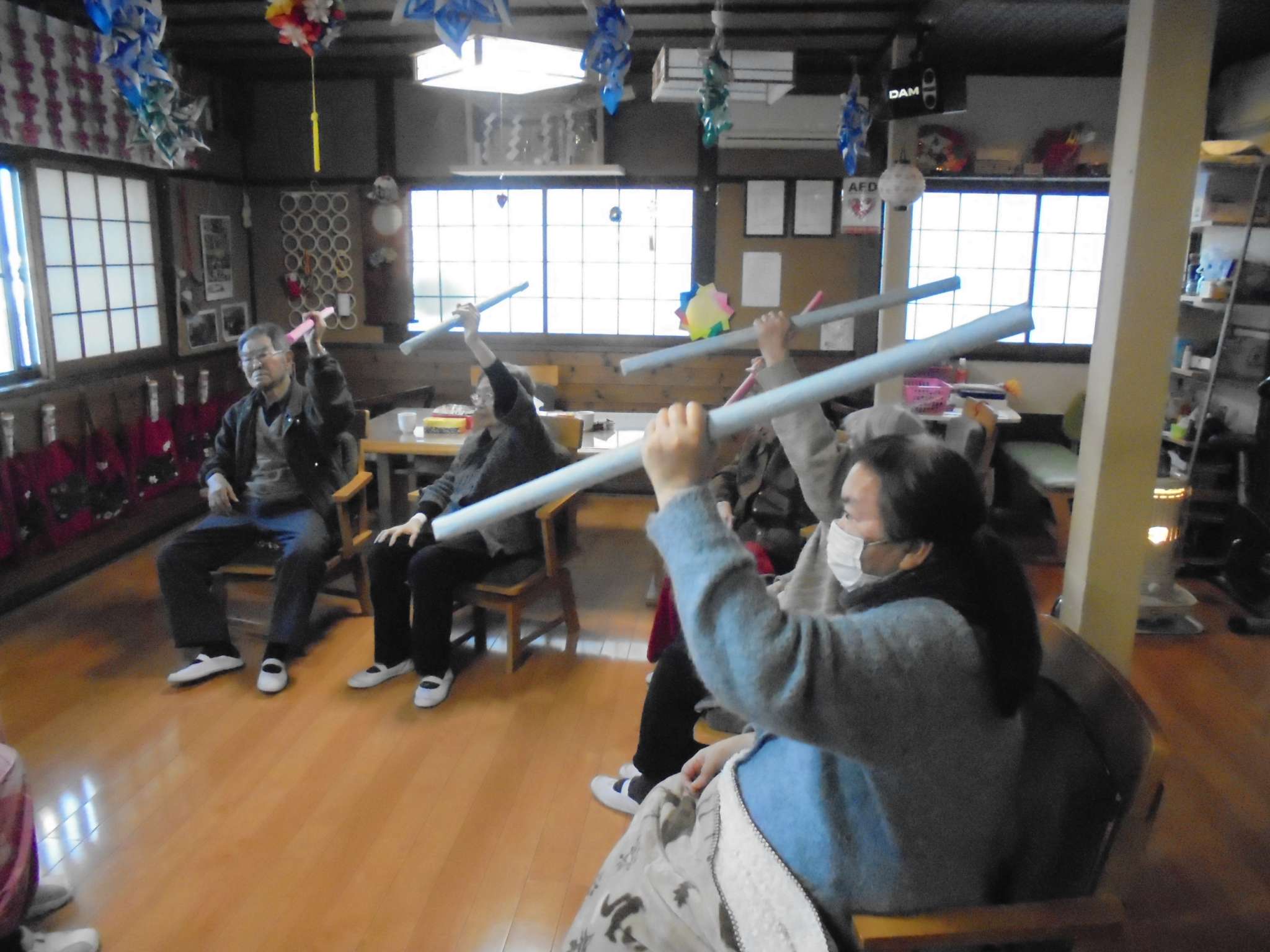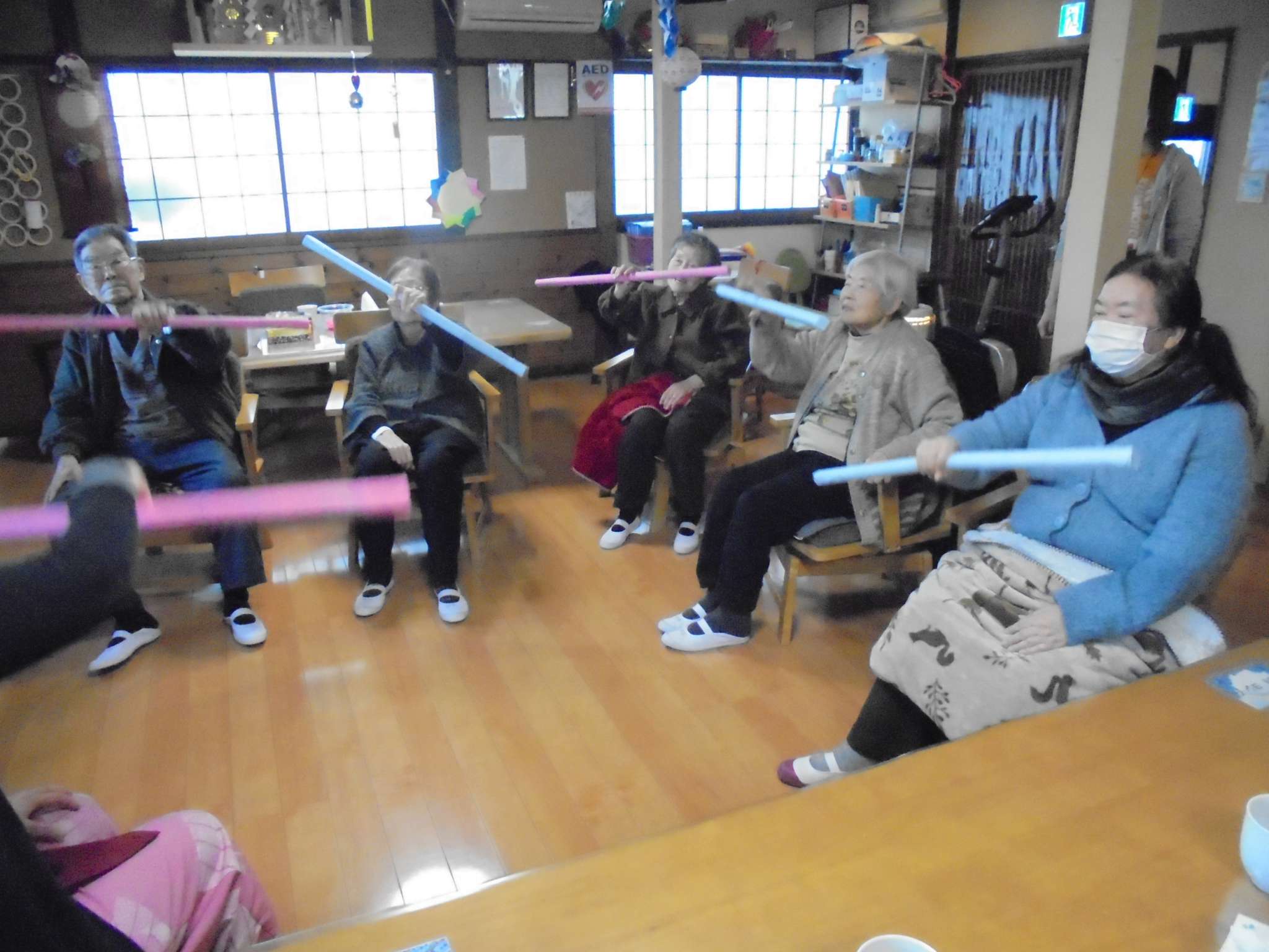 午後の体操の後は、室内歩行訓練