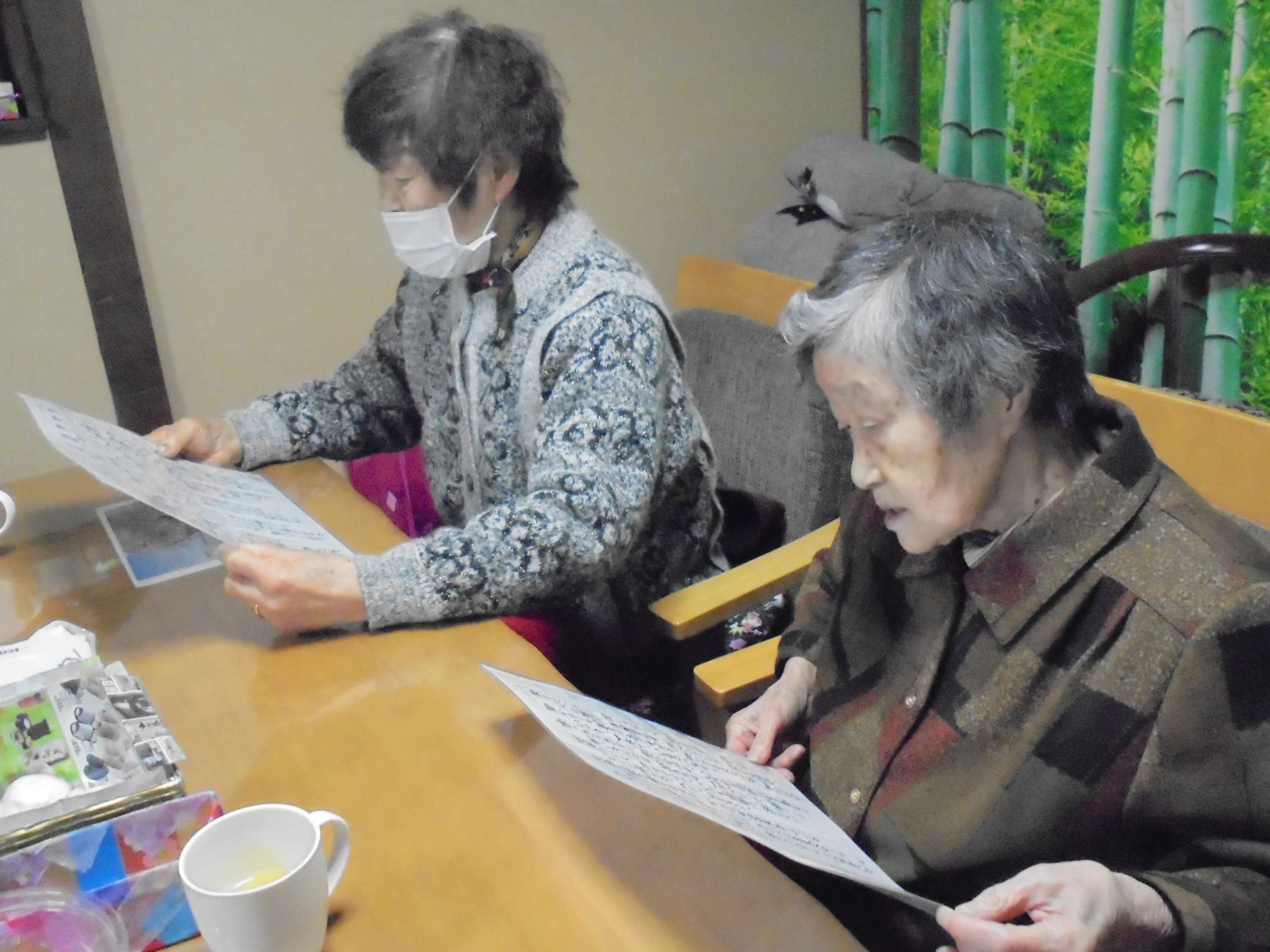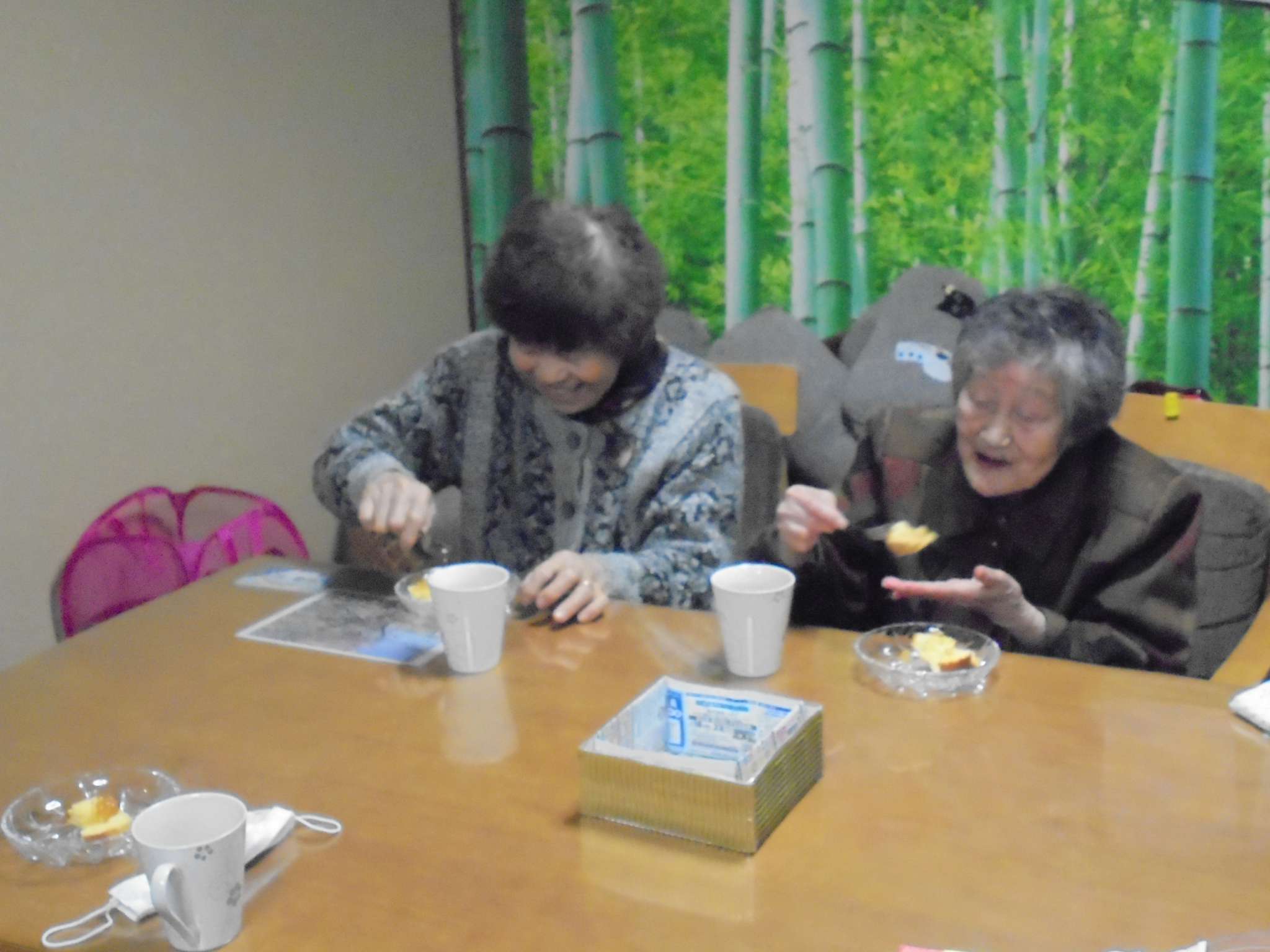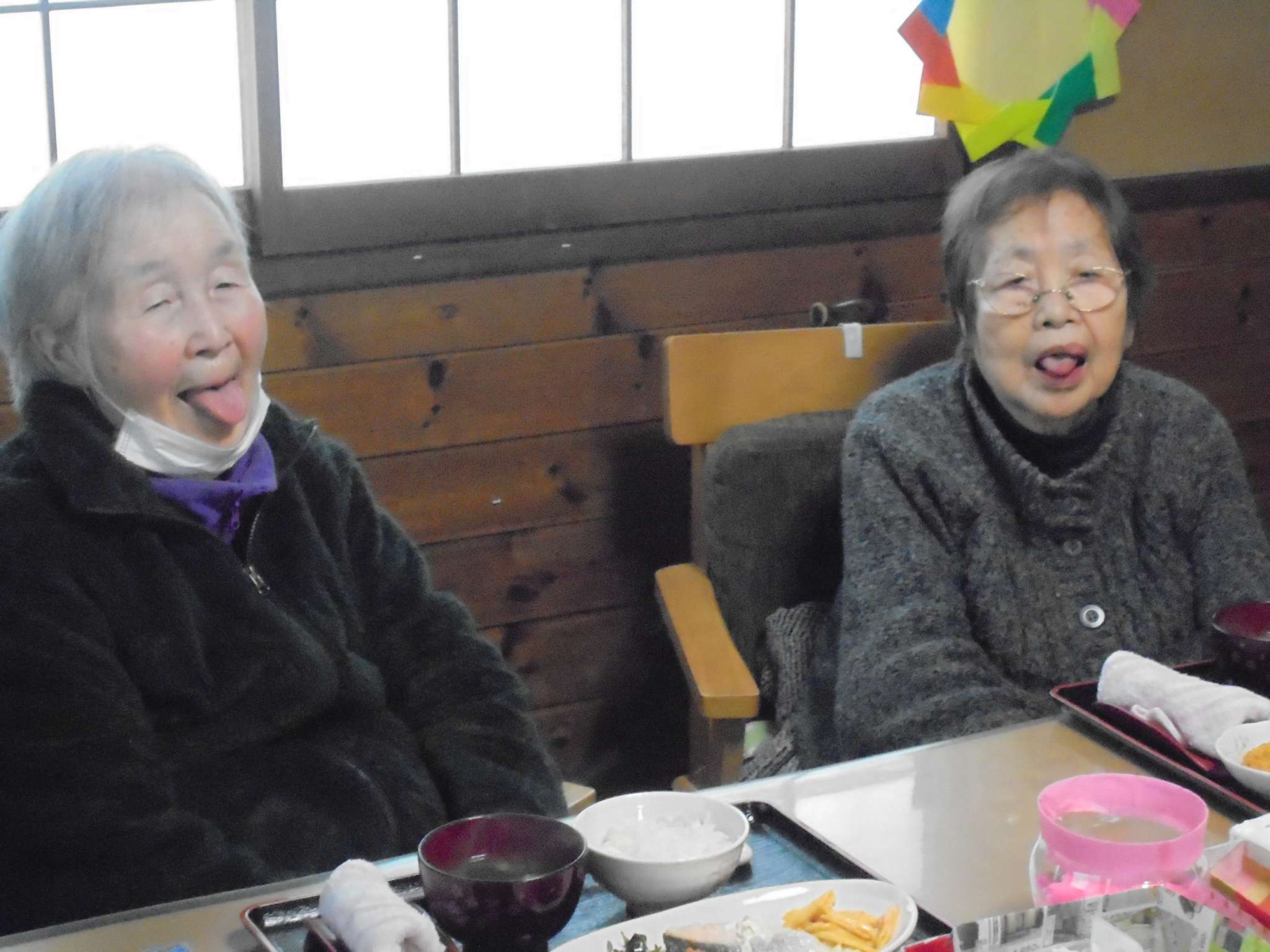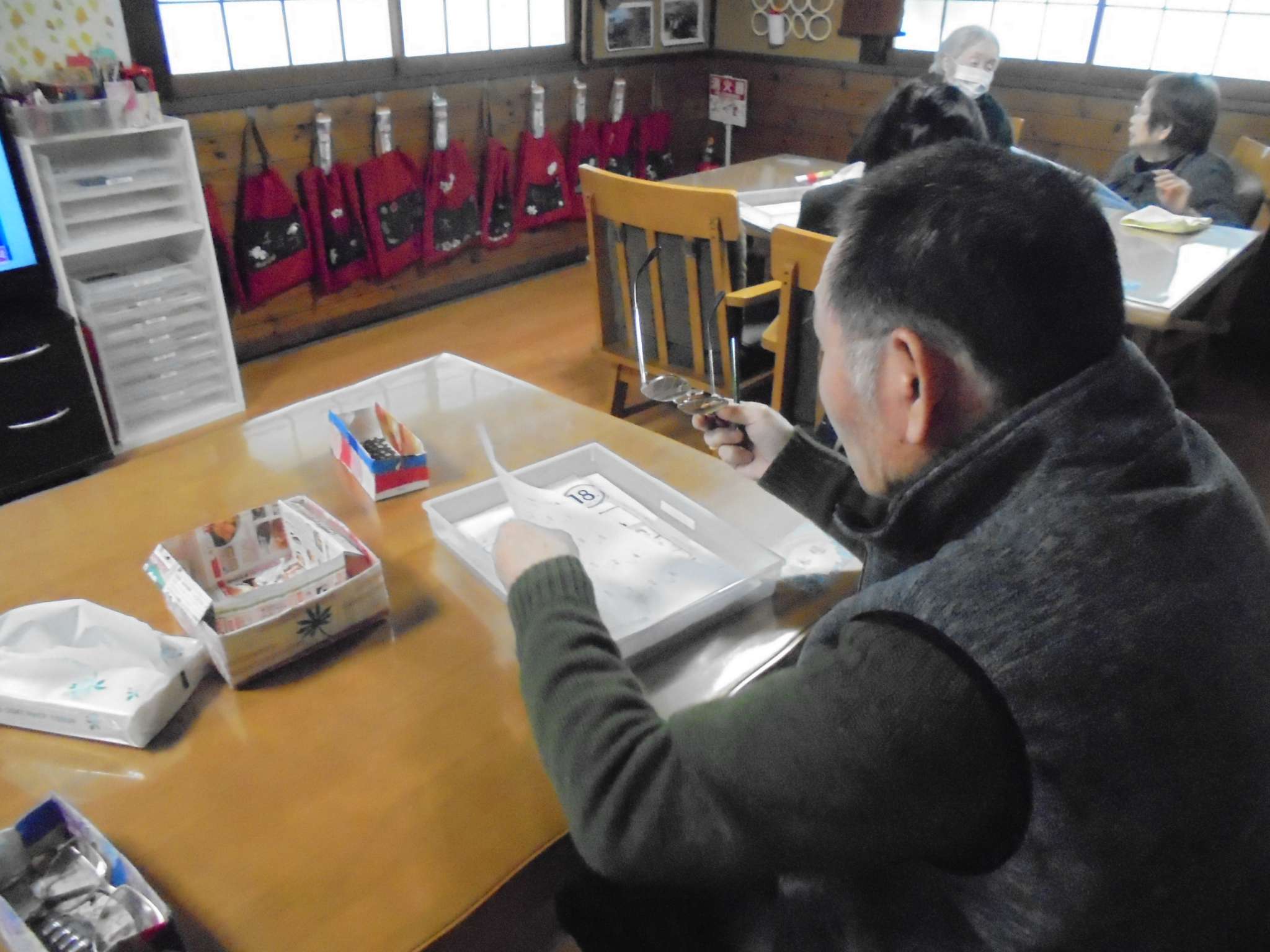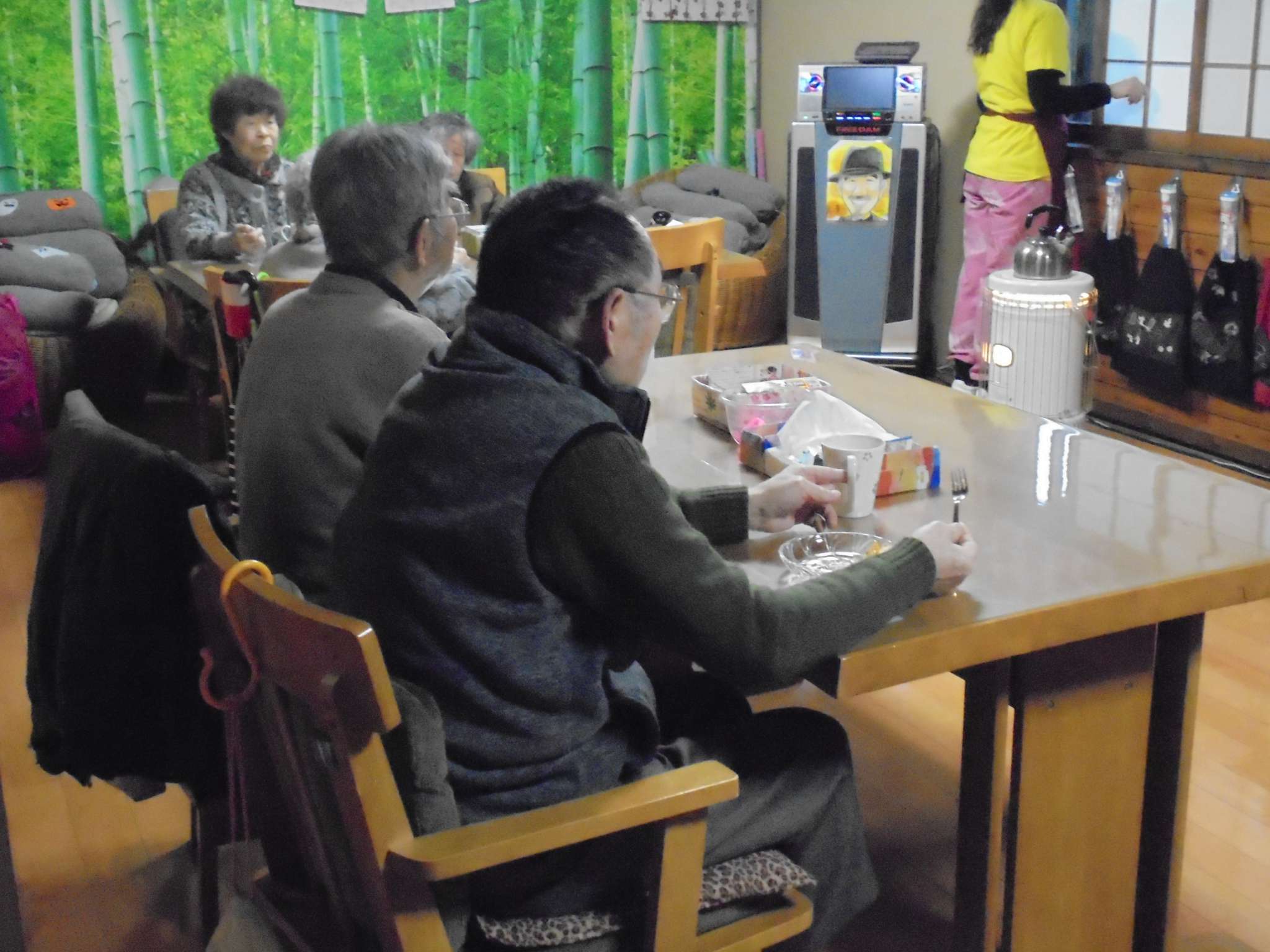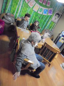食事を終えた後の個人的運動をする方、2名