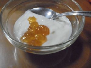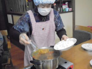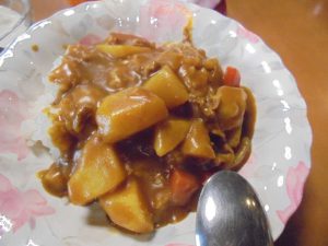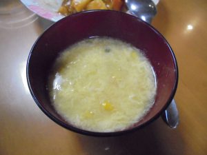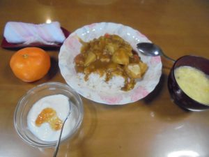 献立は、カレーライス(甘口)、たまごスープ、デザート(ヨーグルト※バナナ入り)