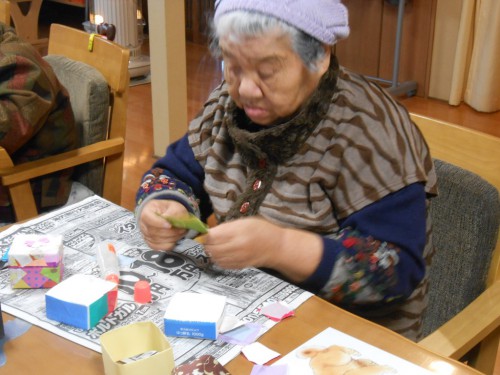 午後のレクレーションは引き続き可愛い小箱作りです。
