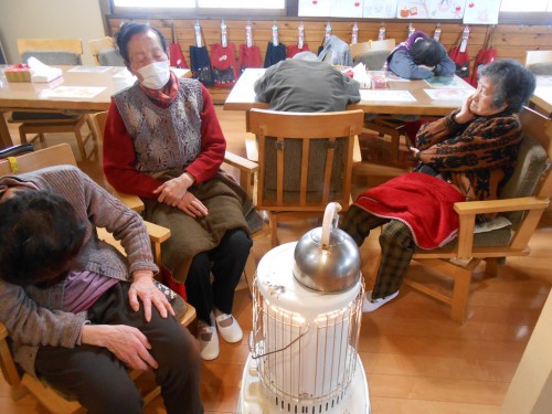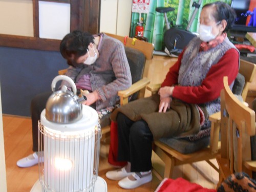 ストーブの周りでおしゃべりタイム![]()
