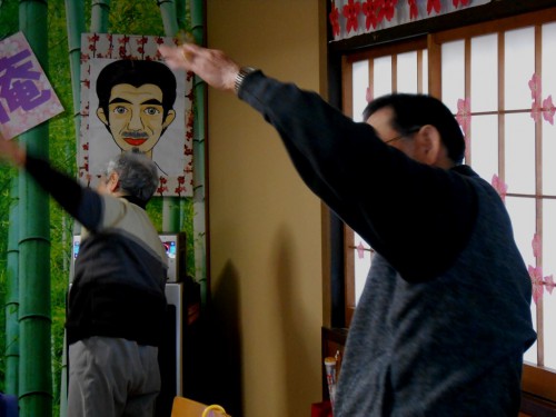 さァ、午後も元気に散歩の前の準備運動です。