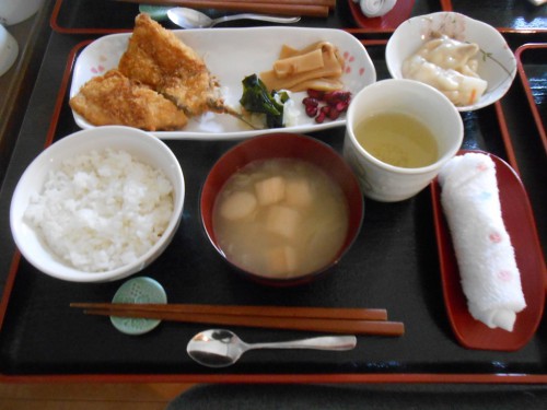 今日のお昼ご飯は、大きなあじのフライがメインでした!