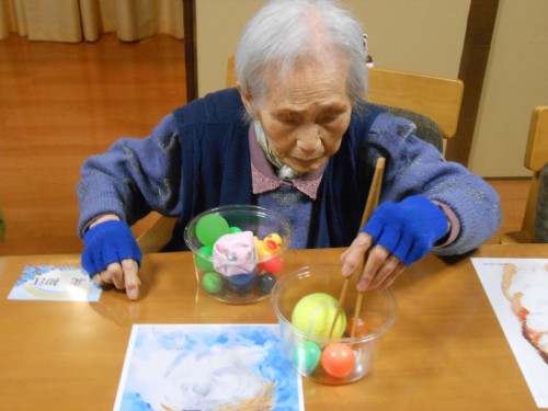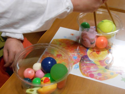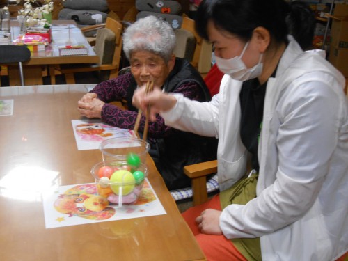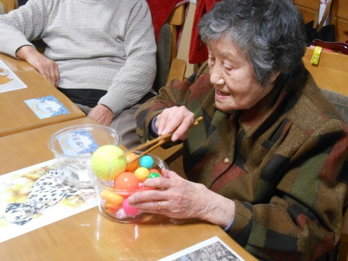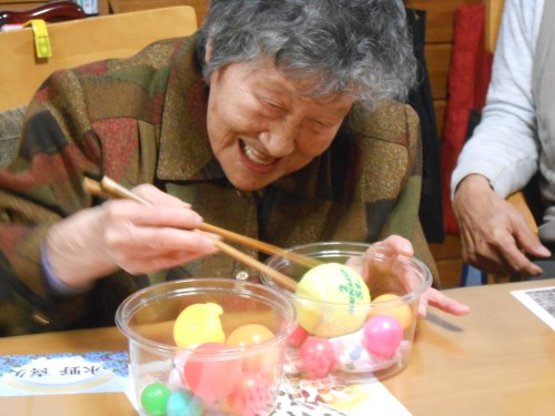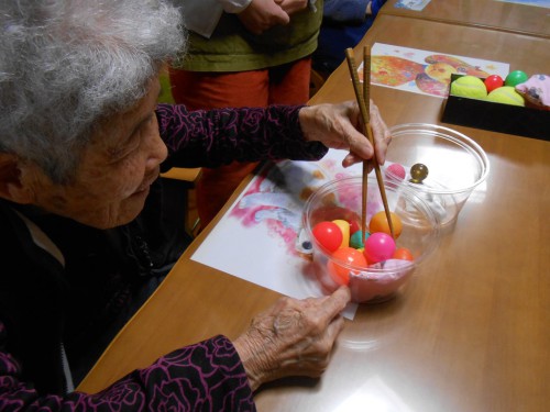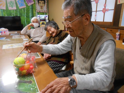 午後のレクレーションは、お箸リレーをやりましたよ!