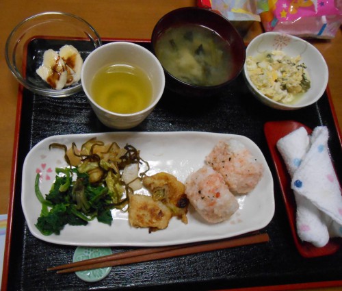 おにぎり・味噌汁・茶わん蒸し・漬物・