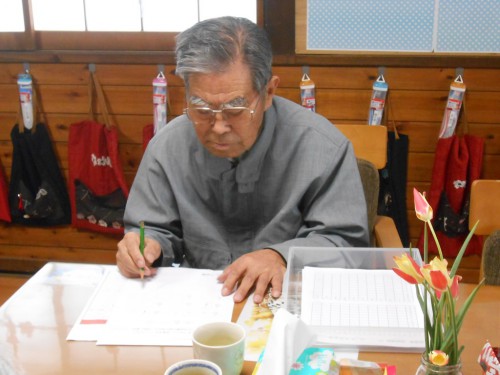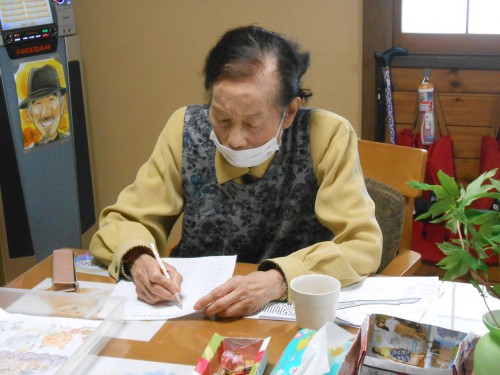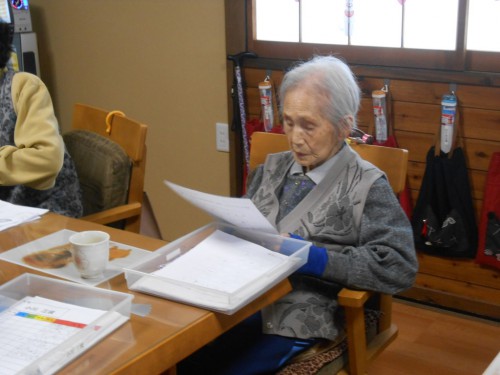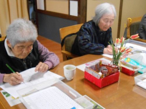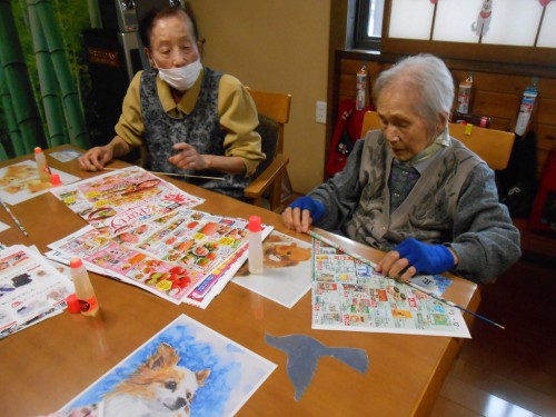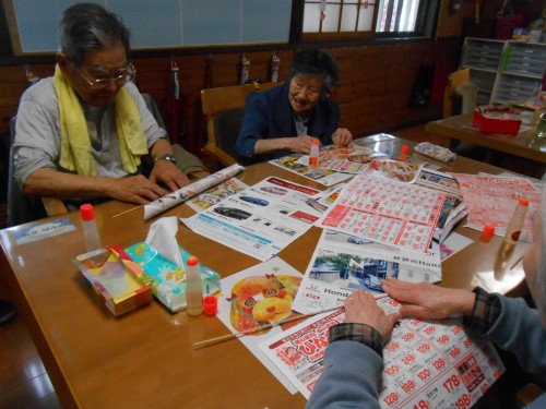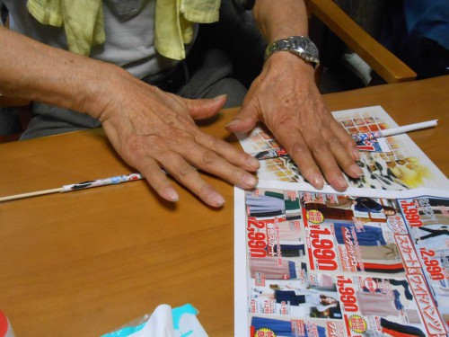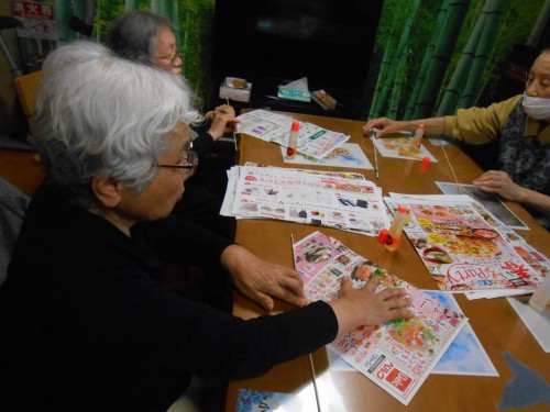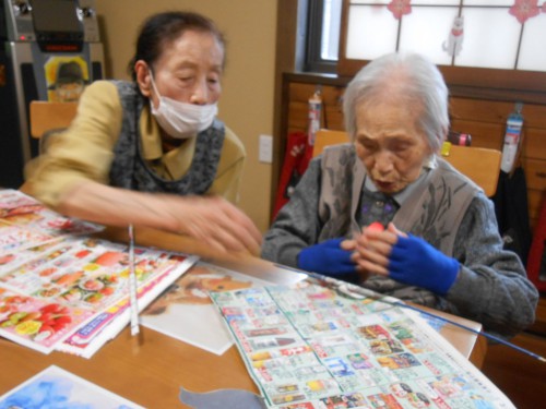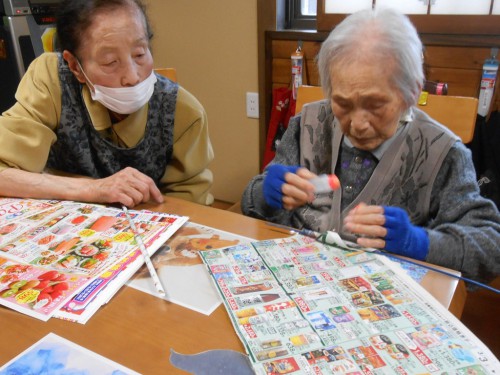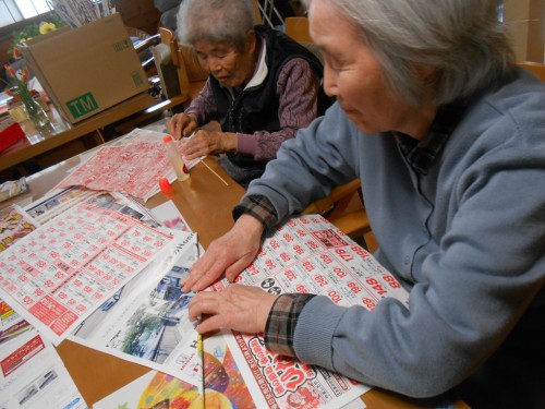 今日のレクリェーションもチラシを丸めます![]()