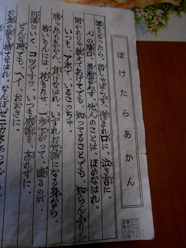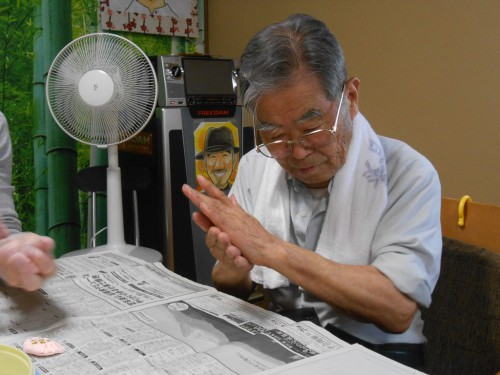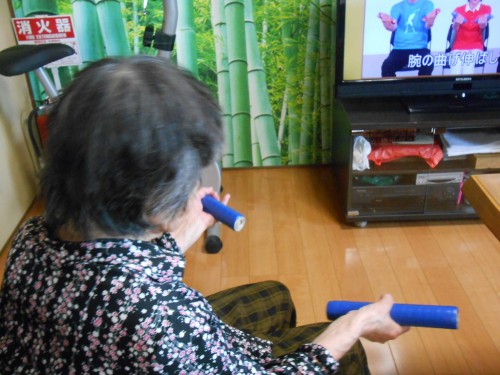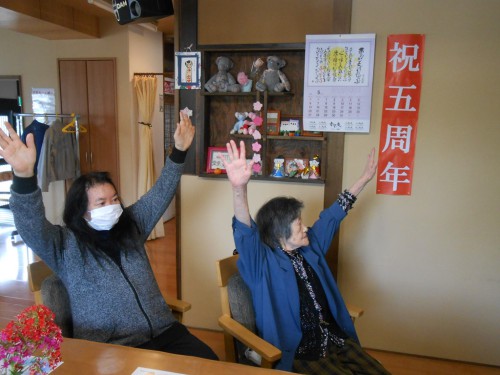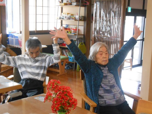 歌の合唱、ぼけたらあかんの唱和、体操です。