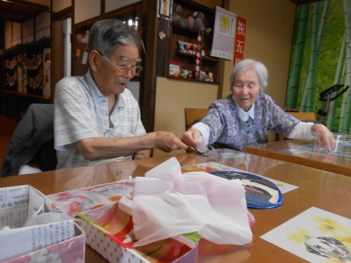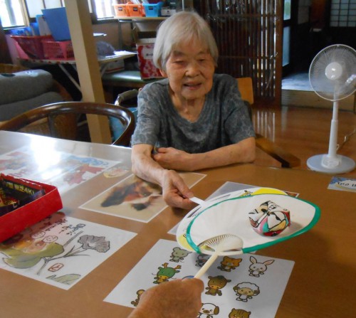 『うちわを使ったお手玉リレー』ですcherryblossom