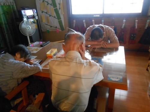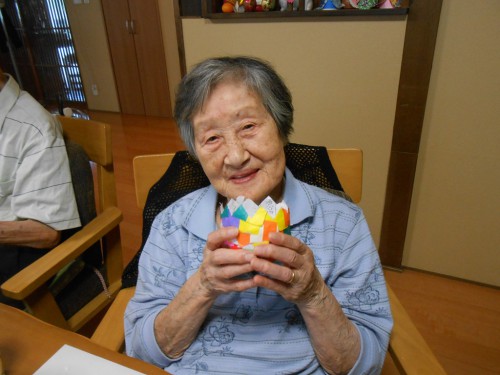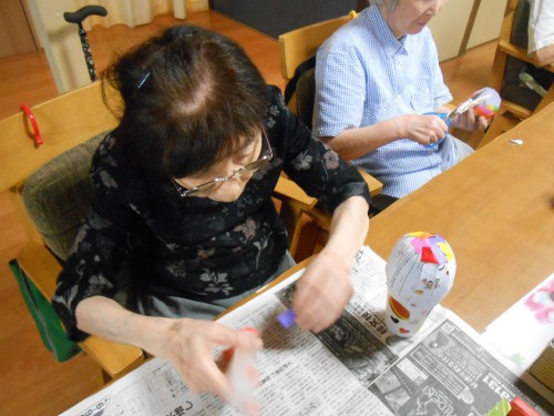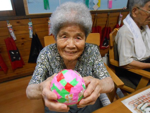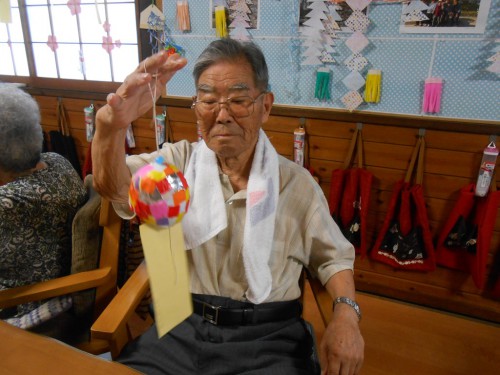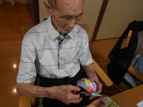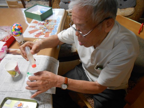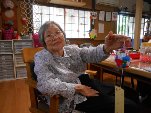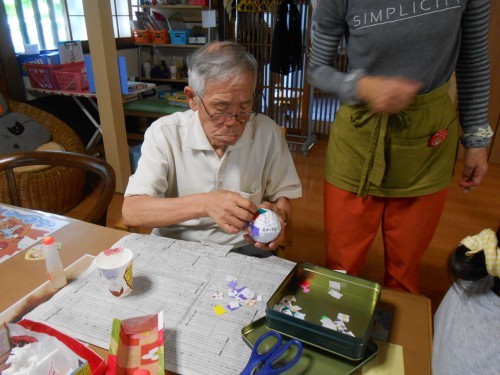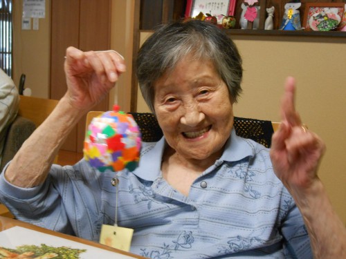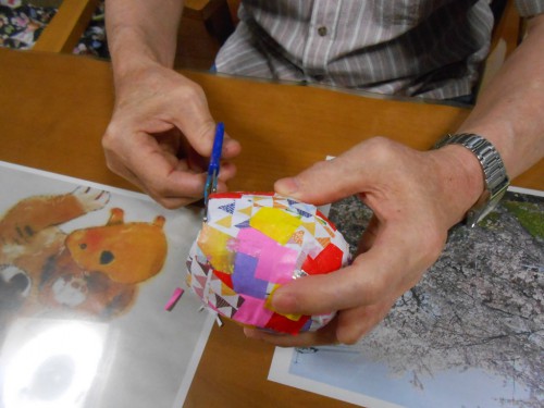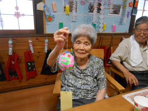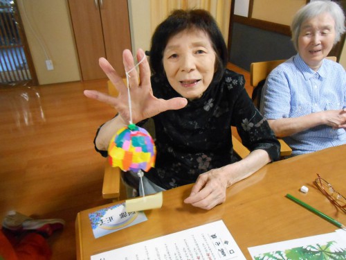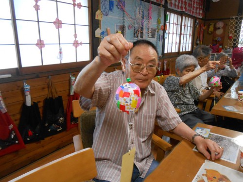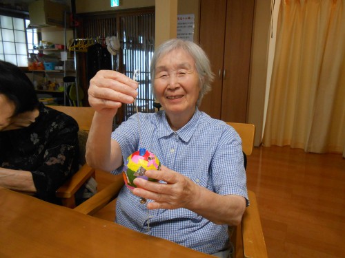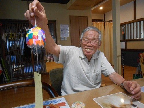 切ったら、ビーズ、鈴、短冊をつけて風鈴完成