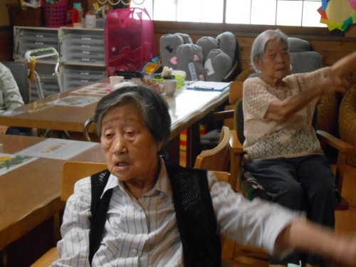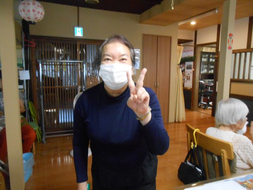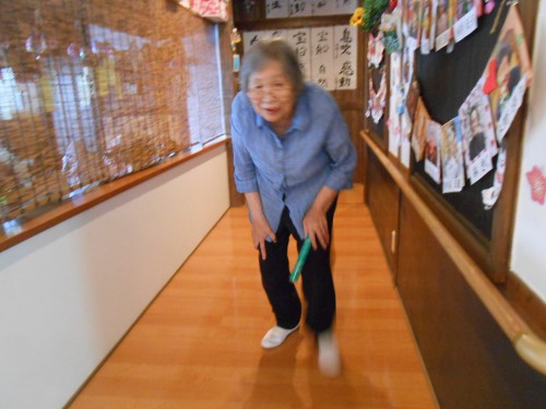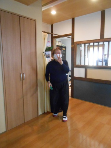 後は歩行訓練です。「しあわせはー」「ワンツー」![]()