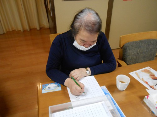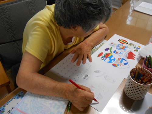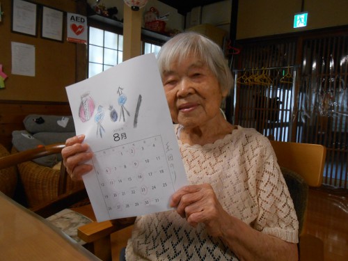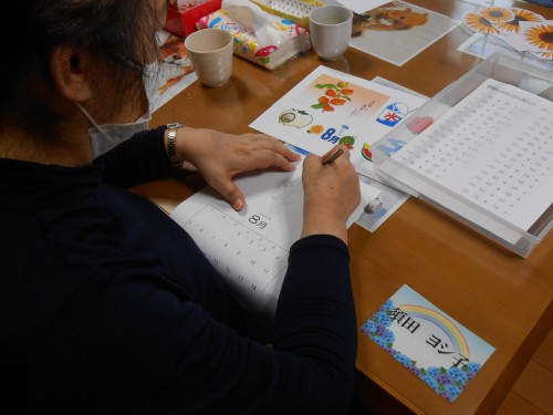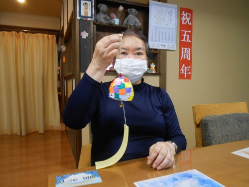 今日、風鈴完成。こちらの母はカレンダー完成。