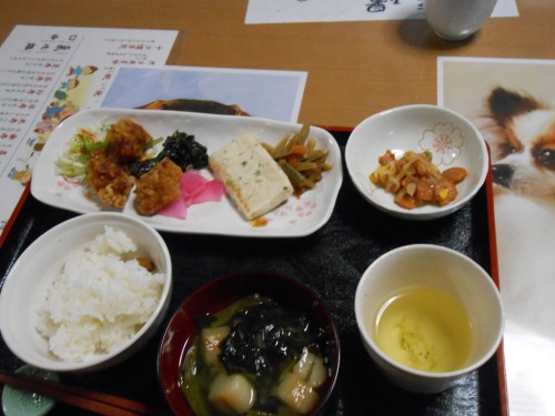 今日の昼食「鶏から揚げ」「ふの味噌汁」