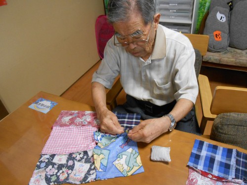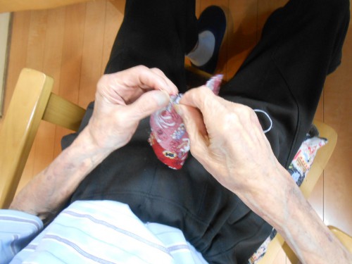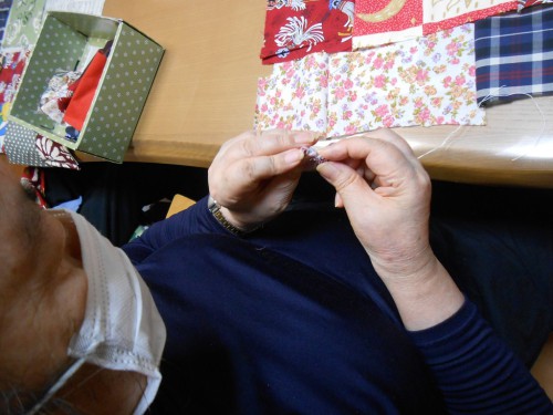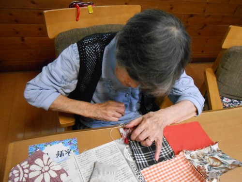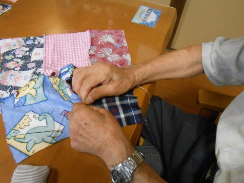 裁縫の時間も声掛けをしないと、手を