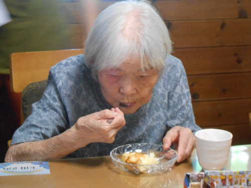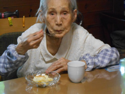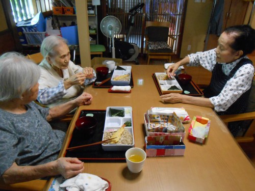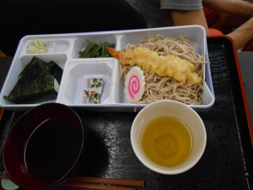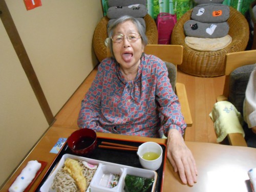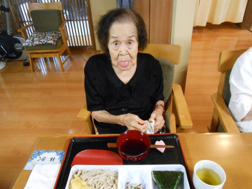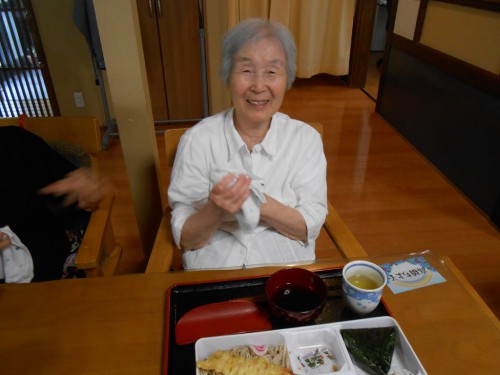 今日は「海老天そば」の昼食です。口腔体操から