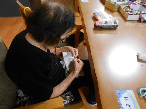 サプライズの後は、レクで、色塗りとお裁縫です。