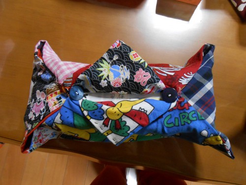 ぞくぞくと、出来上がった「ティッシュケースカバー」の紹介。