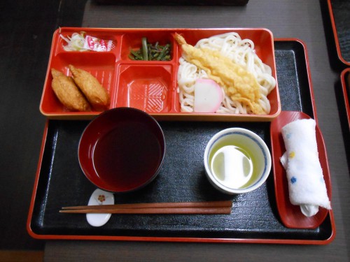 今日の昼食「いなり寿司と、海老天うどん」です。