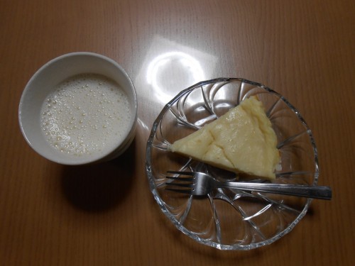 今日のおやつ「ヨーグルトケーキと、豆乳バナナ」