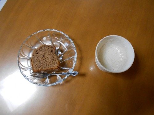 おやつは「パウンドケーキと豆乳バナナ」です。