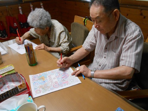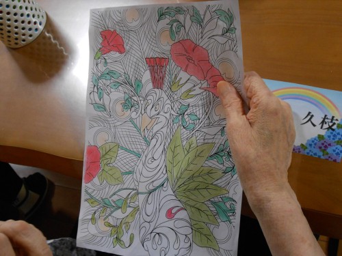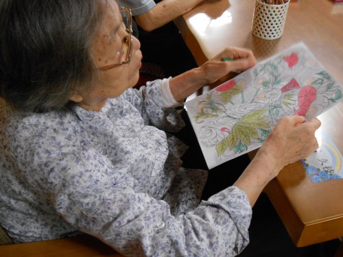 体操の後は「大人のぬりえ」「脳トレ」