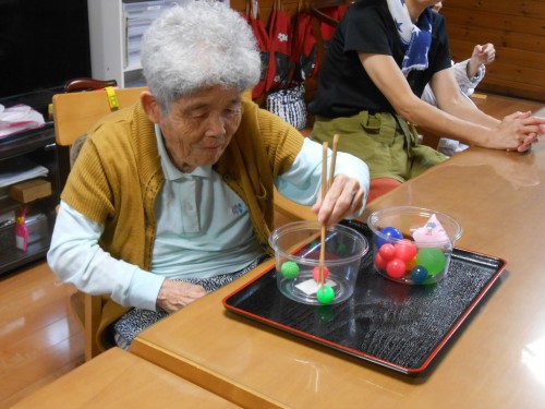 午睡の後のレクレーションは、「おはしリレー」をやりましたよひらめき