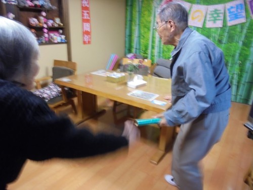 こちらのお母さんは「ぼけたらあかん」の書いてある紙を裏返しにして