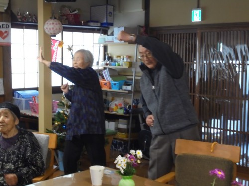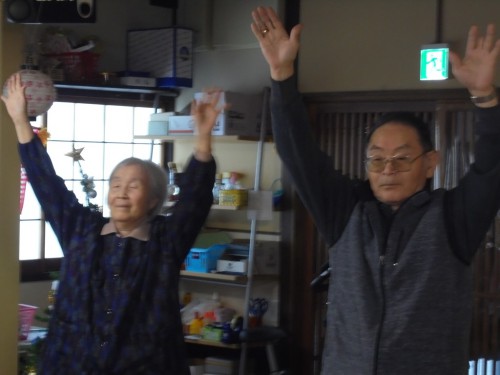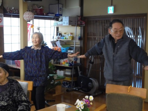 午睡の後の体操と歩行訓練の様子です