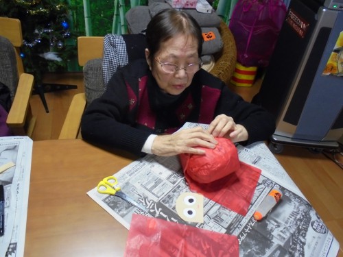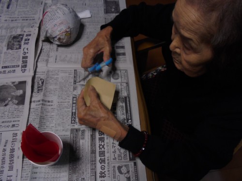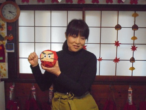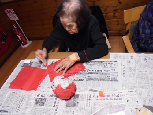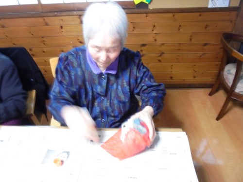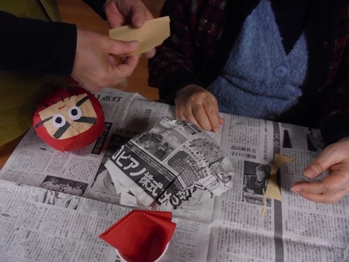 午後レクは、先日作った門松と一緒に飾るだるまを作ります!