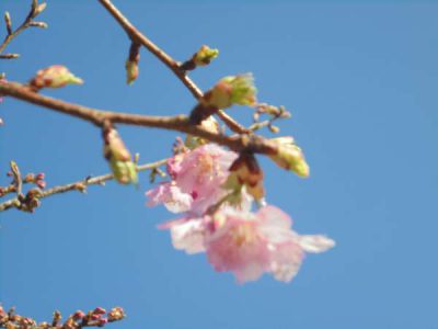 数日前の河津さくらから比べると、かなり蕾が開花したようです