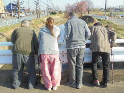 橋の下には、鴨や鯉もこの陽気に誘われて