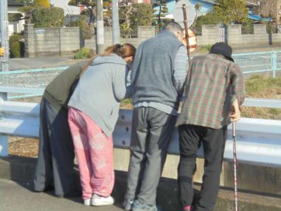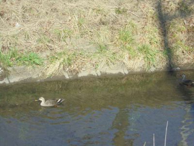 橋の下には、鴨や鯉もこの陽気に誘われて
