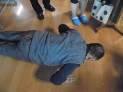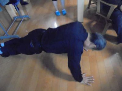 スタッフ達も一緒に腕立て伏せ\(^o^)/