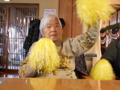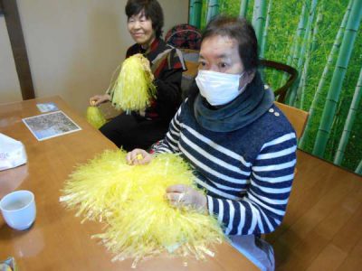 ポンポンを持って体操を楽しみます