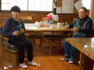 両手にダンベル代わりの、重りを持って・・・
