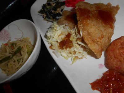 今日のメニューは豚肉竜田揚げ,塩焼きそば