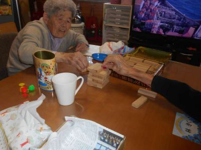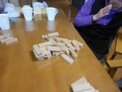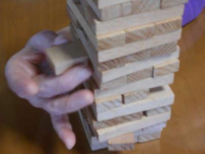 ブロックを積み上げたタワーから、1つずつパーツを抜き
