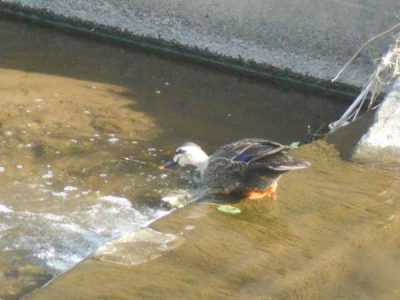 真心前の堤にいるカルガモ