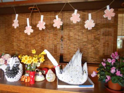 時期になりましたね(#^.^#) 玄関先の桜と白鳥が