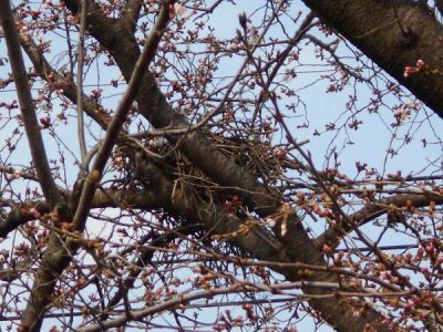 桜の木に、大きな鳥の巣発見