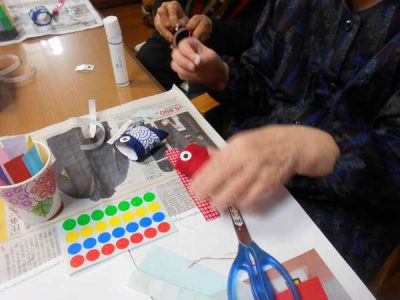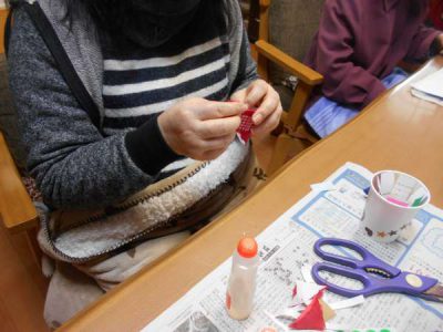 お散歩から帰って 節句に向けての製作です