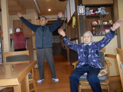午後も元気に体操からスタート手 (グー)手 (グー)