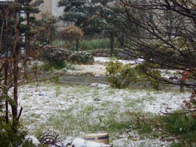 本日は季節外れの雪が降りました
