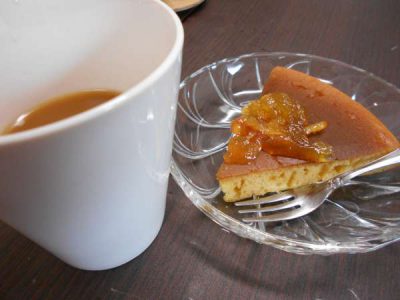 今日のおやつは、手作りケーキのマーマレード添え