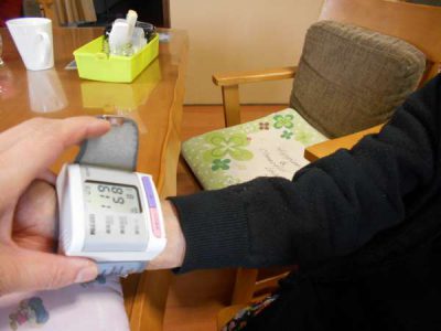 バイタルチェックが済んだらー (長音記号2)お茶でひと息湯のみ揺れるハート