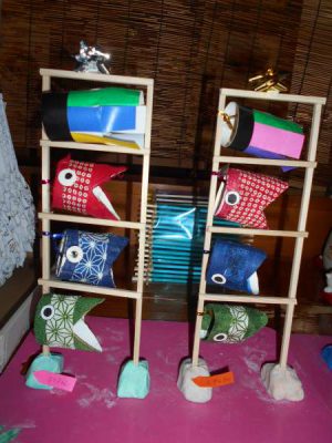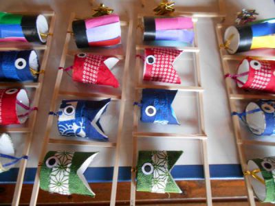 記しをつけて・・鯉のぼりのはしごを作ります手 (チョキ)