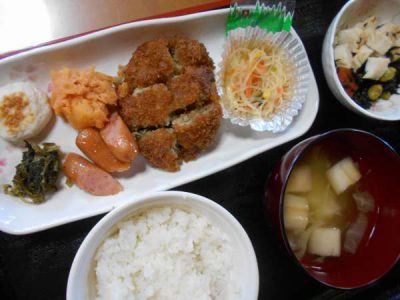 メンチカツ、ソーセージ、はるさめサラダ目ハート