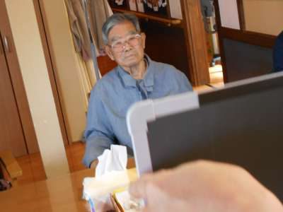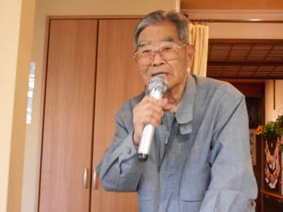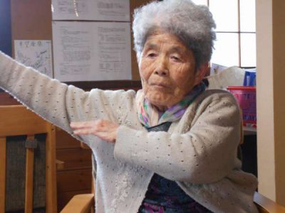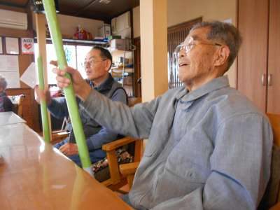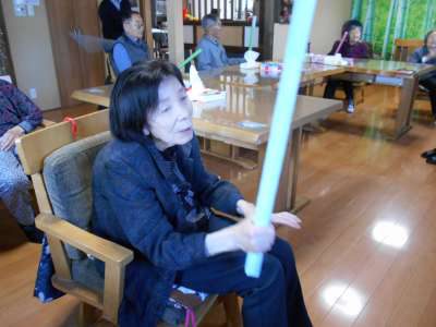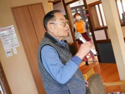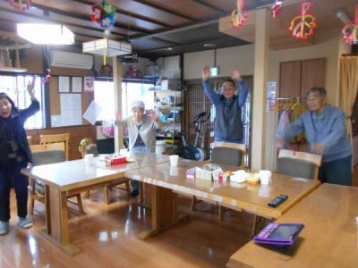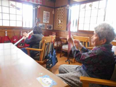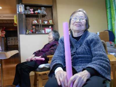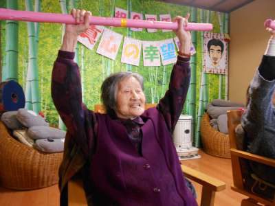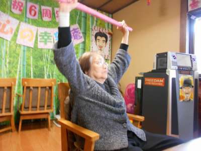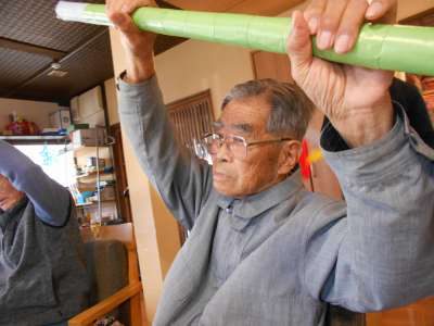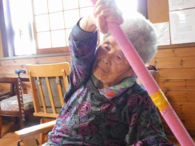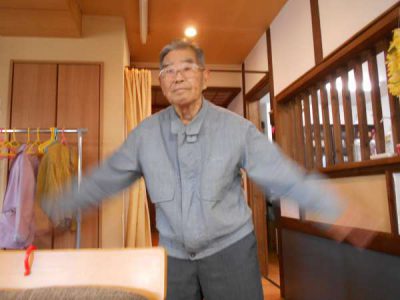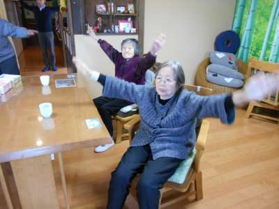 大正生まれのお父さんも、立位で体操しています手 (チョキ)