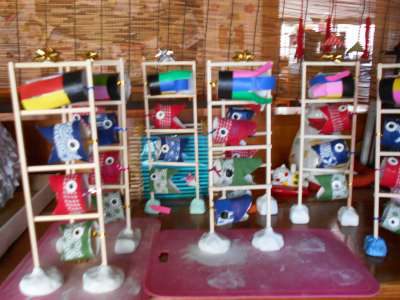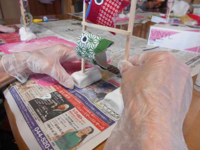 こいのぼりを粘土にさして安定させ土台にしますほっとした顔ほっとした顔