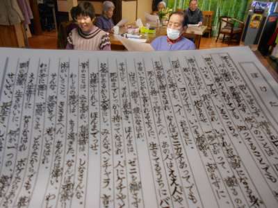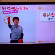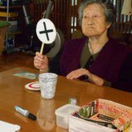 問題をスタッフが読み上げて○✖の札を上げて頂きました