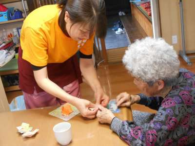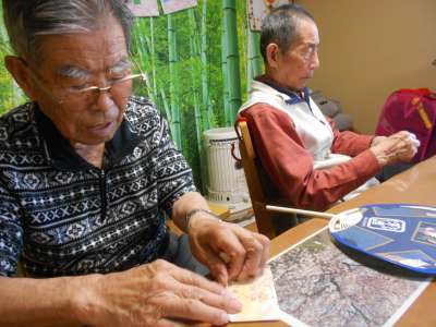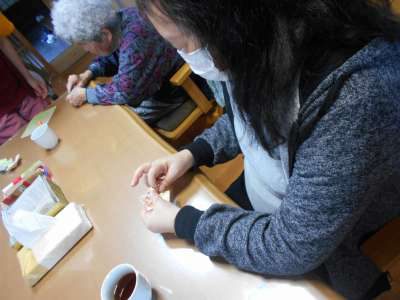 唾液を出して、食べ物を飲み込みやすくまとめる